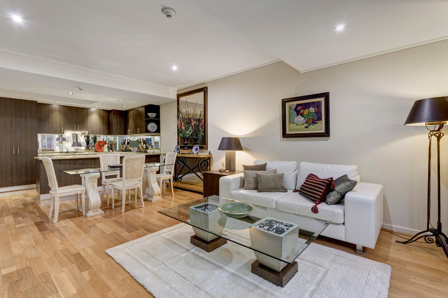 New property designed and decorated for businessman. New fit outs for dressing and bathroom including special paint effects and new LED lighting throughout. New Mod wood deck installed covering split level and cabinetry camouflaging a/c system.
